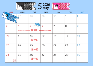 誠に勝手ではございますが、5/4~5/6は店休日とさせていただきます。